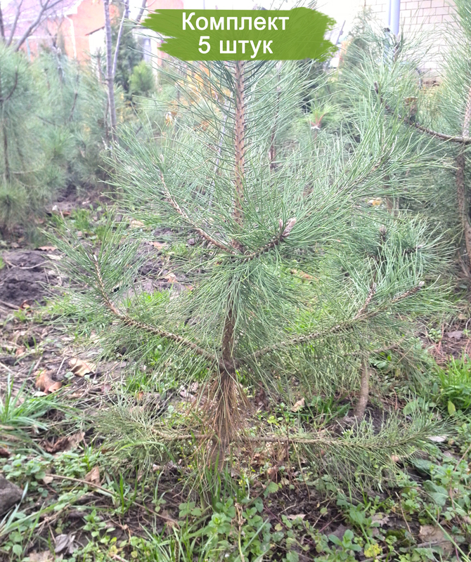 Комплект из пяти сеянцев крымской сосны, высотой до 20 см, предлагается по привлекательной цене - платите за четыре, получаете пять. Крымская сосна - это дерево, достигающее в высоту от 30 до 50 метров, исторически использовавшееся в судостроении благодаря прочности своих стволов. Кора дерева темная, с трещинами, изменяется от темно-коричневого оттенка у основания до оранжево-красного у вершины.